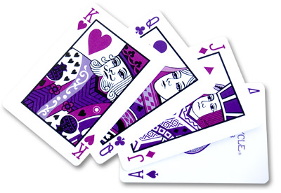 חבילת קלפים חדשה ומעוצבת מבית היוצר של בייסיקל. החבילה בצבע לוונדר (סגול חלש) ובאיכות לא ירודה מאיכות של חפיסת קלפים רגילה. גם לפני הקלף יש גוון סגול חלש ויפיפה המושך את העין! האיכות הטובה ביותר! *מהדורה מוגבלת