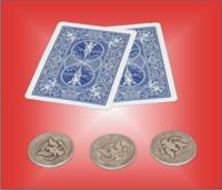 מטבע דרך גומי - Coin Penetration Rubber הקוסם לוקח כוס או צינצנת ומותח עלייה גומי, הוא מבקש ממתנדב שני מטבעות רגילים לחתום על אחד מהמטבעות ולהניח אותו על הגומי ואת המטבע השני לנסות לדחוף דרך הגומי (כמובן שהמתנדב לא מצליח) אך כאשר לוקח את המטבע (החתום!!) ומעביר אותו בלי שום בעייה דרך הגומי המתנדב פשוט המום!!